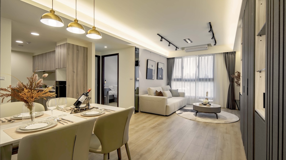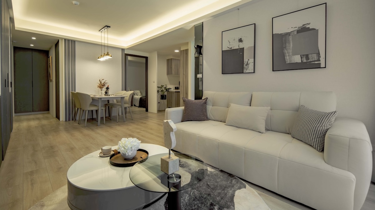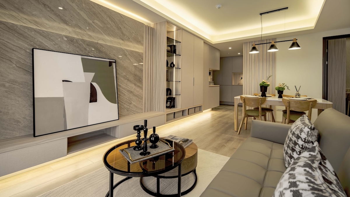 回家就該慢慢走,享受在夕陽時分,建築朗闊退縮五米七的樹海林蔭大道;走在三面臨路寬敞的開放空間時,心變寧靜了,腳步也輕盈了。一進門,迎接雙眼的是大廳的文風質域,美麗的光影一路延伸到四季景觀中庭。多元休閒設施、風格優雅低奢,每個空間都是舒心放鬆的好地方。