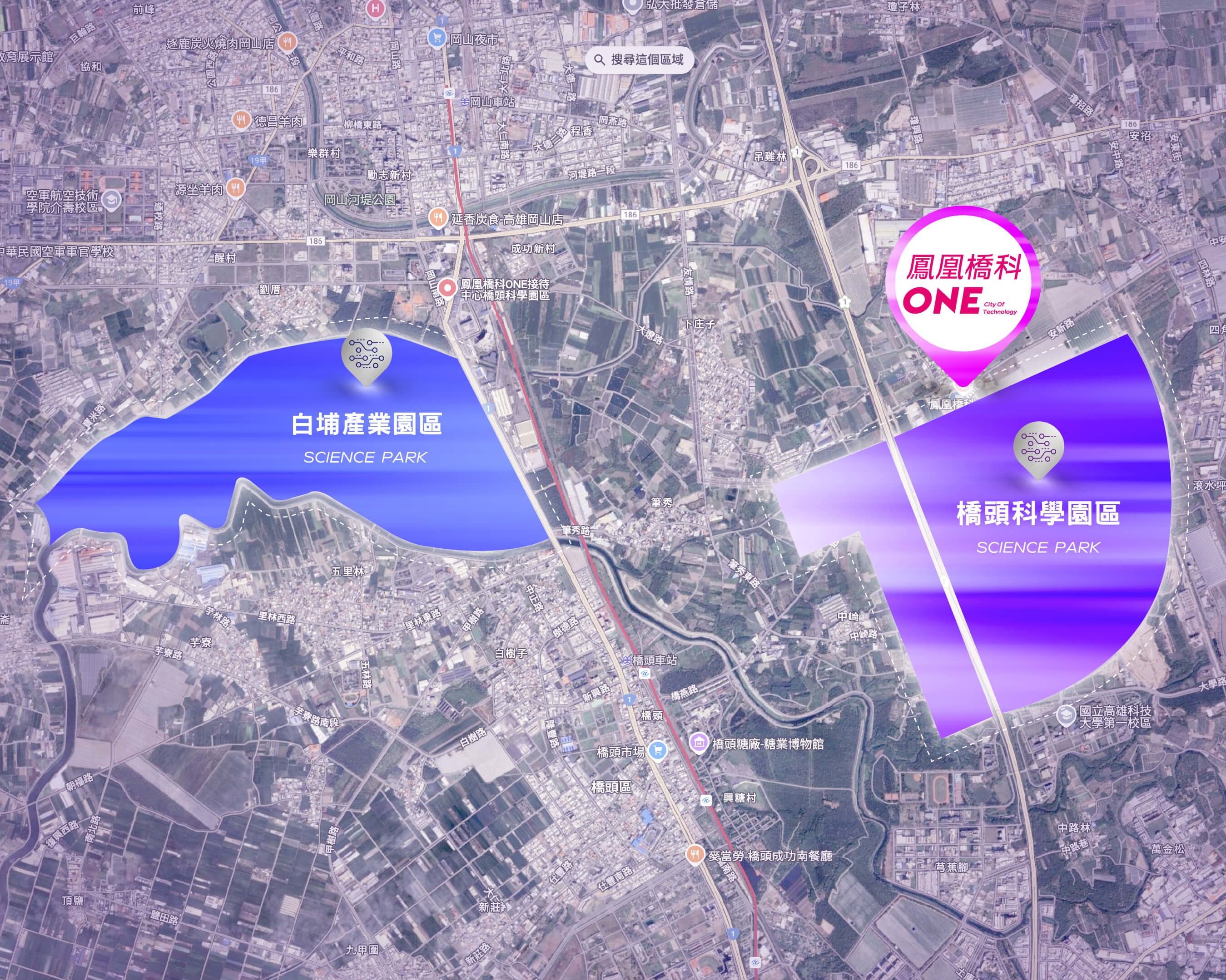 橋頭科學園區預計提供11,000就業機會,串聯南科與楠梓產業園區、高雄軟體園區,形成完整供應鏈與產業聚落。未來白埔產業園區内44.24公頃土地,未來供半導體產業使用,9.39公頃土地供未來其他相關產業使用。